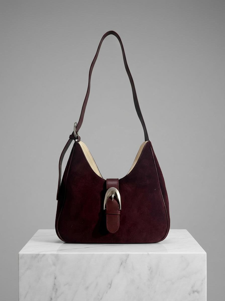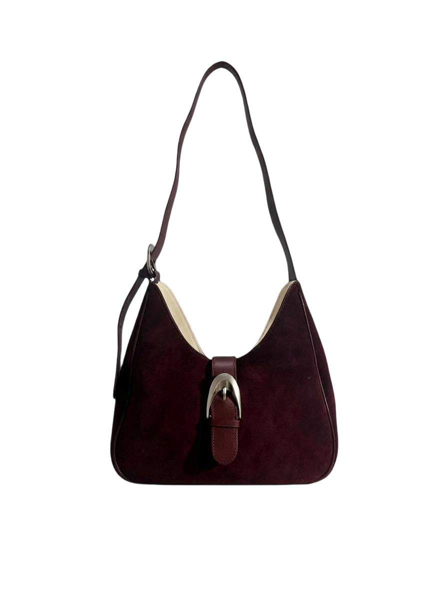 Burgundy Medium Suede Buckle Bag