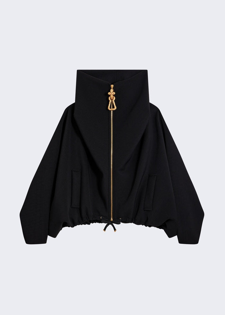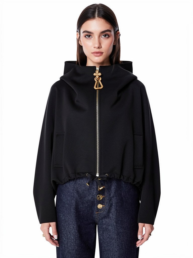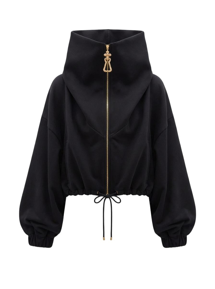 Black Oversized Gold Padlock Zipper Jacket